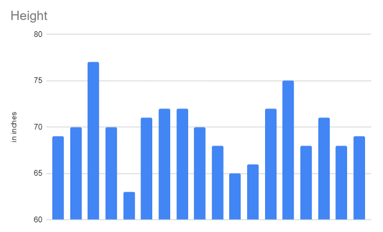 The average height is 69.7 inches, which is an unsurprising 5’10.