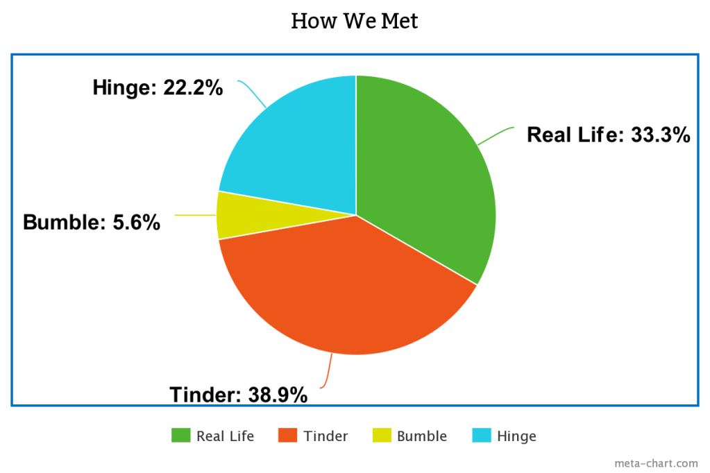 I do find this one kind of interesting because I thought I was relying too heavily on dating apps, but a third of my dates come from real life meetings. These obviously didn’t work out either, but they were more likely to become friends after.